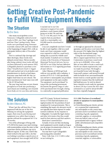 not been delivered by mid-summer 2022. (MTAS) to see if they had any definitive later we were able to locate a used truck