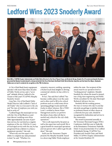 presented the Murphy Snoderly Award to Johnny Leford with the City of Red Bank. Red Bank Public Works Director, Greg Tate and Red Bank Vice Mayor, Stephanie