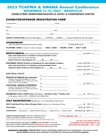 INSURANCE IS REQUIRED: VENDORS MUST include with Exhibitor Registration Form and Payment, a copy of your current