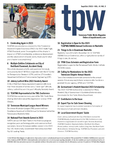© 2023 TN Public Works Magazine. All rights reserved. Reproduction in whole or part without written permission is prohibited. TPW is provided FREE OF CHARGE to TCAPWA members and select