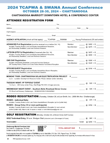 or REGISTER ONLINE at tennessee.apwa.org. You may pay with a credit card using the link provided when registering. No invoices will be issued for fees.