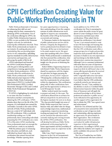 Public Works professionals in Tennessee for career opportunities or improving recent addition to the APWA CPII