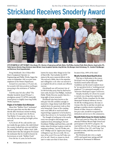 employee in the Streets Department. and willingness to do what was needed to Snoderly award earlier this year.