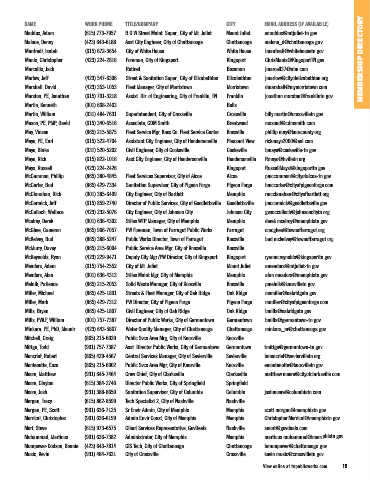Manis, Christopher (423) 224-2816 Foreman, City of Kingsport Kingsport ChrisManis@KingsportTN.gov MEMBERSHIP DIRECTORY