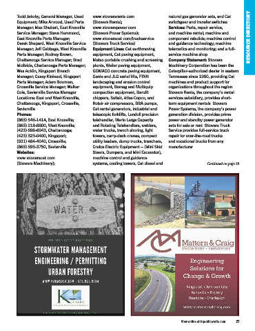 East Knoxville Parts Manager; www.stowerscat.com/truckservice component rebuilds; machine control RESOURCE DIRECTORY
