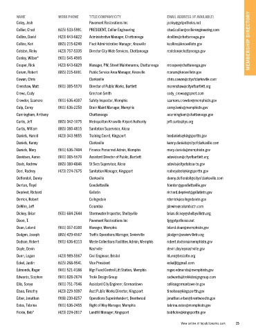Collins, Keri (865) 215-6249 Fleet Administrative Manager, Knoxville kcollins@knoxvilletn.gov MEMBERSHIP DIRECTORY