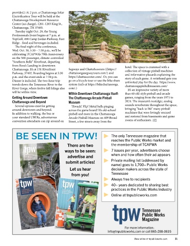 travels down the Tennessee River to the system (info at https://bikechattanooga. chattanoogapinballmuseum.com/