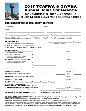 YOU WILL NOT HAVE A BOOTH IF PAYMENT IS NOT RECEIVED BY THE REGISTRATION DEADLINE – OCTOBER 7, 2017