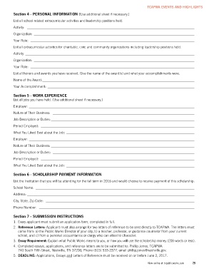 2. Reference Letters: Applicant must also arrange for two letters of reference to be sent directly to TCAPWA. The letters must